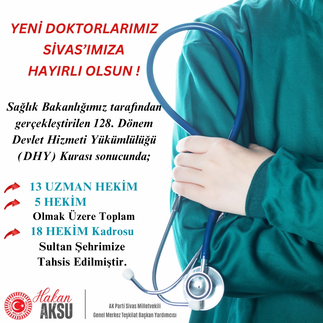 AK Parti Sivas Milletvekili Hakan Aksu, Sivas’a 18 yeni hekim kadrosu tahsis edildiğini açıkladı.
