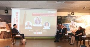 Prof. Dr. Uğur Tuztaşı’nın moderatörlüğünde gerçekleşen söyleşide; Vakıflar Bölge Müdürlüğü’nden Süleyman Çoban ve Mimar Fatma Kiraz,